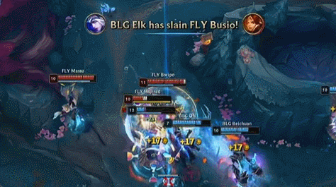 BLG也打出了一波非常精彩的河道团战配合,之后FLY尝试反击,中路抓死加里奥但被BLG支援击杀多人。